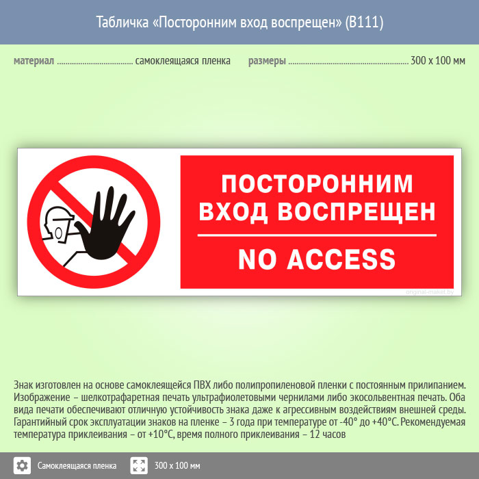 Табличка «Посторонним вход воспрещен», B111