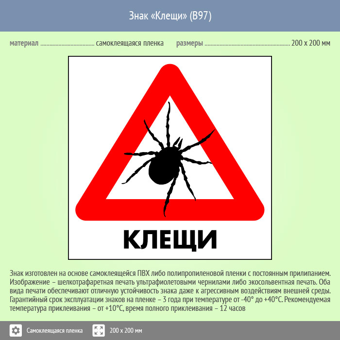 Знак «Клещи», B97 (пленка, 300х300 мм) в Новочебоксарске купить