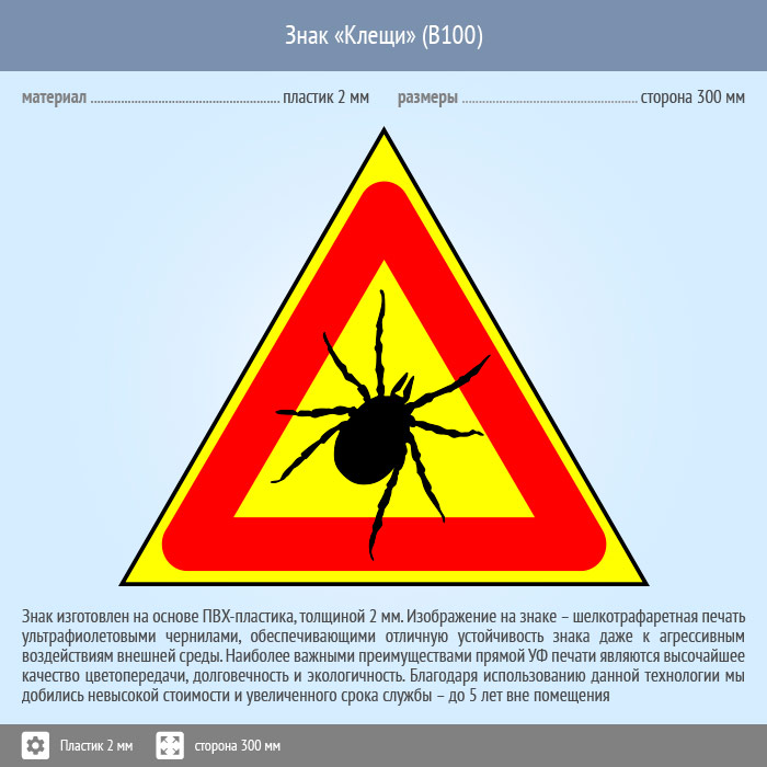 Знак «Опасно! Клещи», B100 (пластик, сторона 200 мм) в Новочебоксарске купить