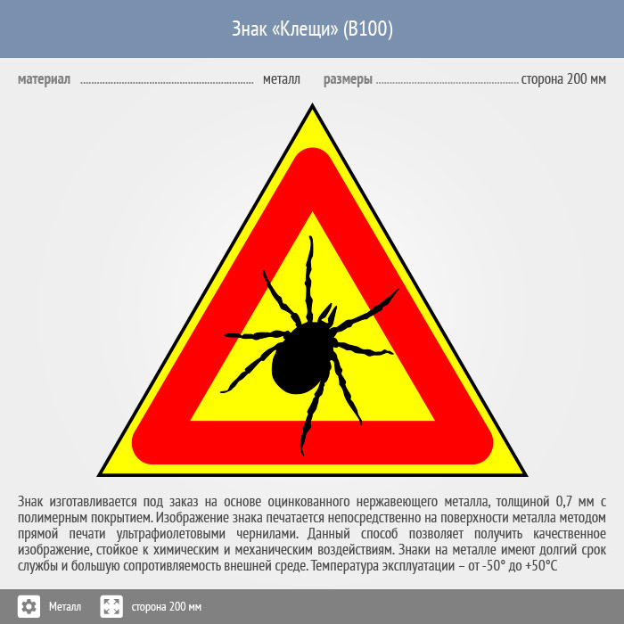 Знак «Опасно! Клещи», B100 (металл, сторона 300 мм) в Новочебоксарске купить