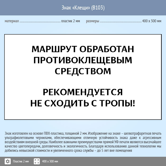 Знак «Клещи», B103 (пластик, 300х200 мм) в Новочебоксарске купить