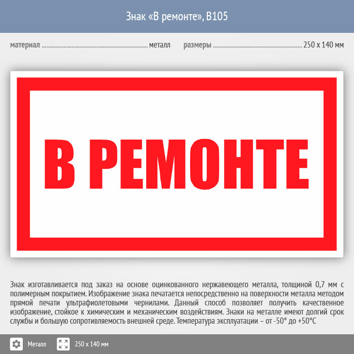 Знак «В ремонте», B105 (металл, 250х140 мм) в Новочебоксарске купить