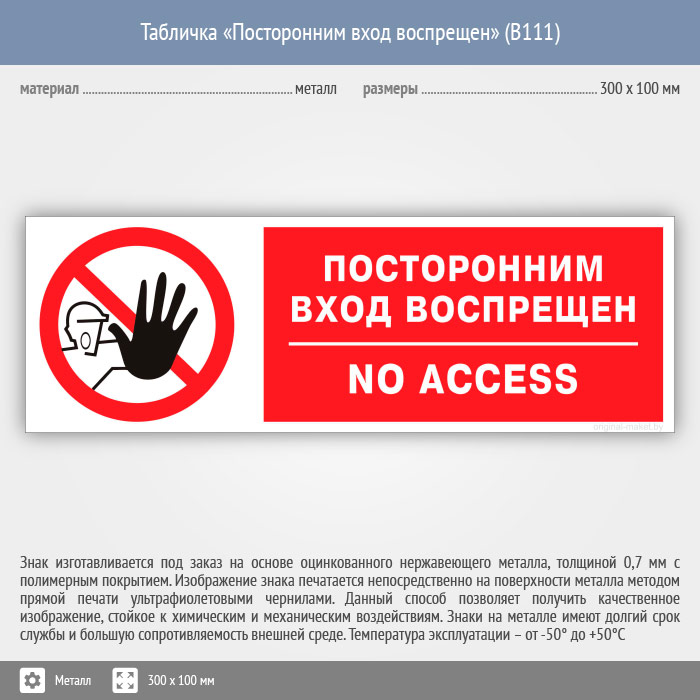 Табличка «Посторонним вход воспрещен», B111 (металл, 300х100 мм) в Новочебоксарске купить