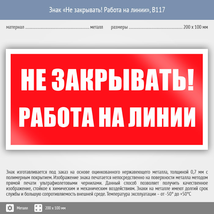Знак «Не закрывать! Работа на линии», B117 (металл, 200х100 мм) в Новочебоксарске купить