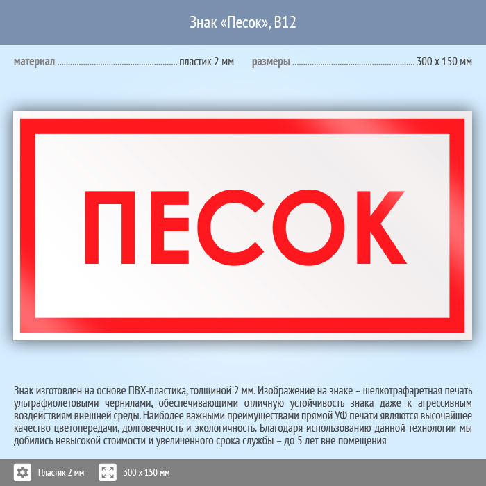 Знак «Песок», B12 (пластик, 300х150 мм) в Новочебоксарске купить
