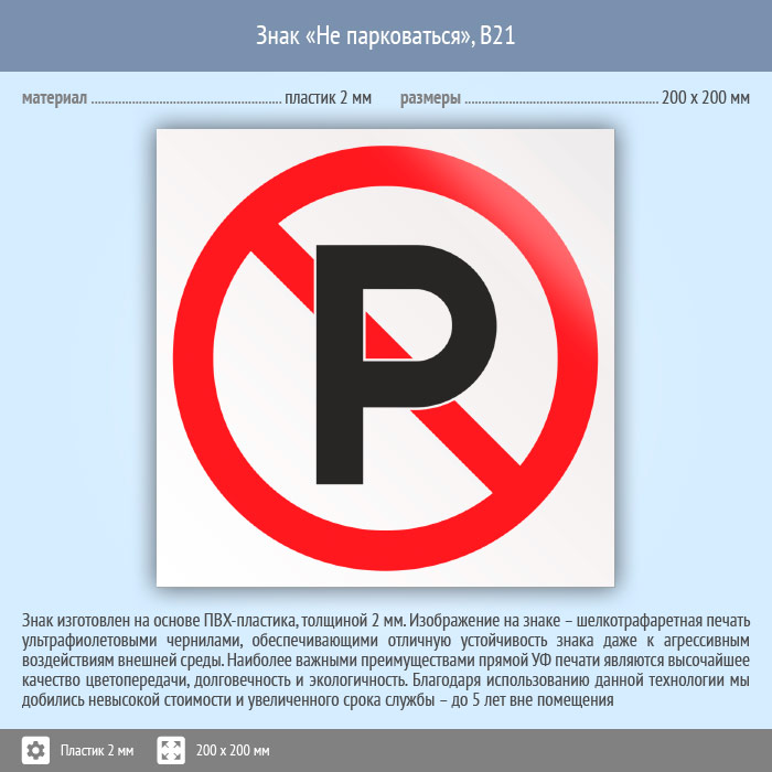 Знак «Не парковаться», B21 (пластик, 200х200 мм) в Новочебоксарске купить