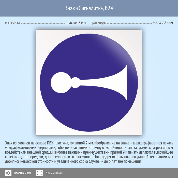 Знак «Сигналить», B24 (пластик, 200х200 мм) в Новочебоксарске купить