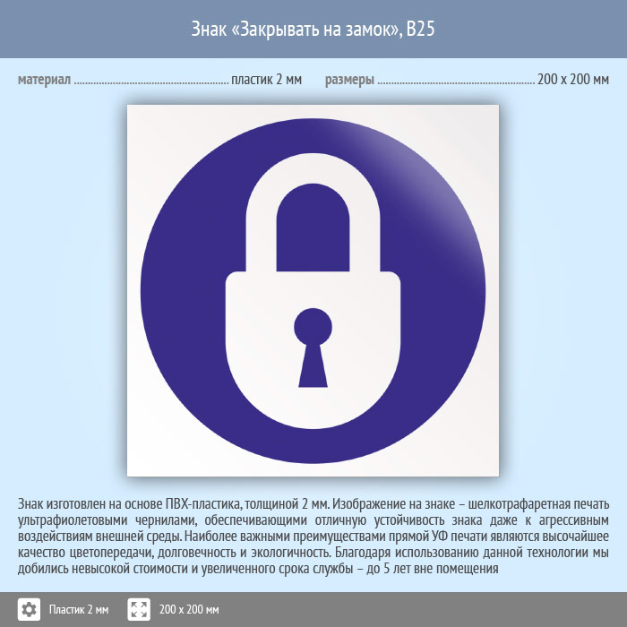 Знак «Закрывать на замок», B25 (пластик, 200х200 мм) в Новочебоксарске купить