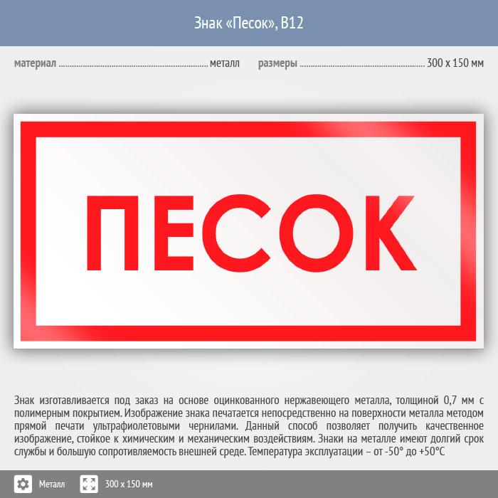 Знак «Песок», B12 (металл, 300х150 мм) в Новочебоксарске купить