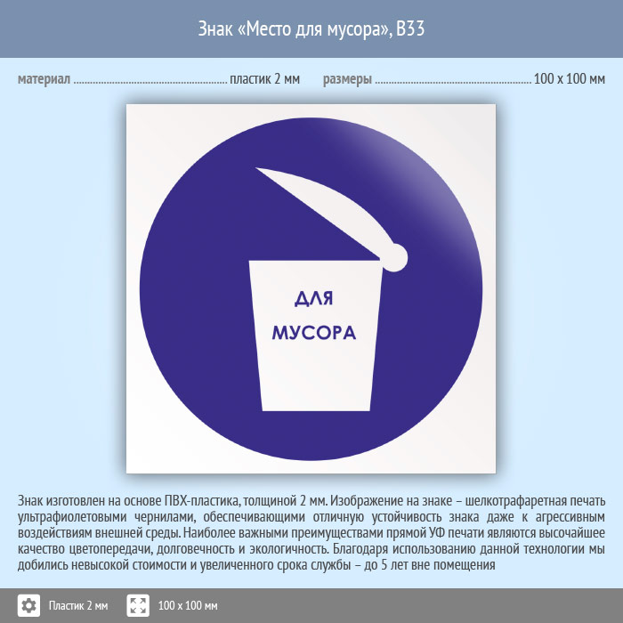 Знак «Место для мусора», B33 (пластик, 100х100 мм) в Новочебоксарске купить
