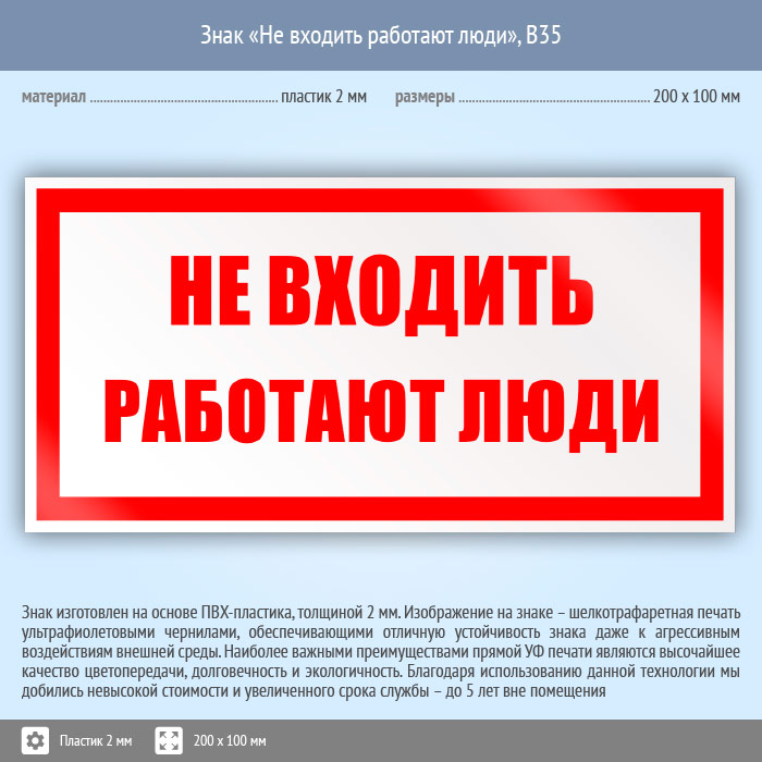 Знак «Не входить работают люди», B35 (пластик, 200х100 мм) в Новочебоксарске купить