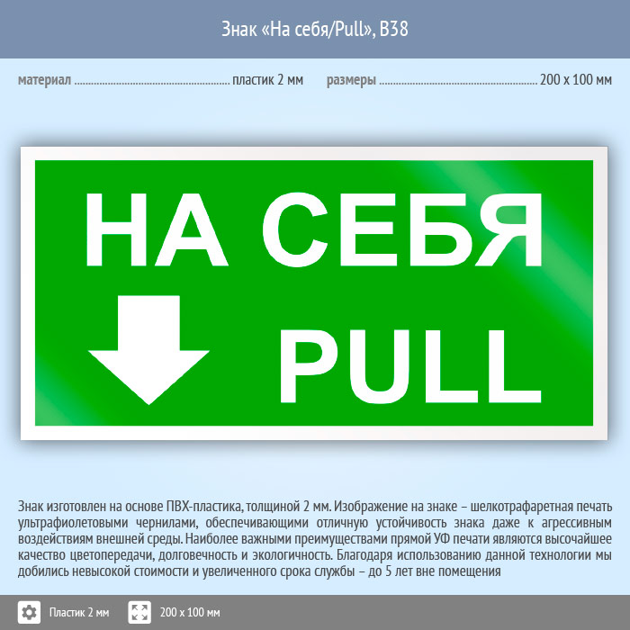 Знак «На себя/Pull», B38 (пластик, 200х100 мм) в Новочебоксарске купить
