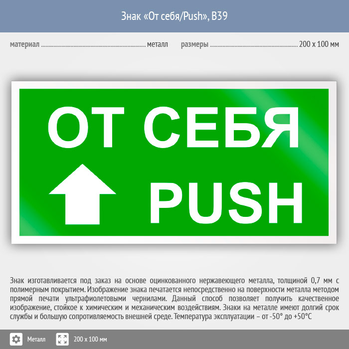 Знак «От себя/Push», B39 (металл, 200х100 мм) в Новочебоксарске купить