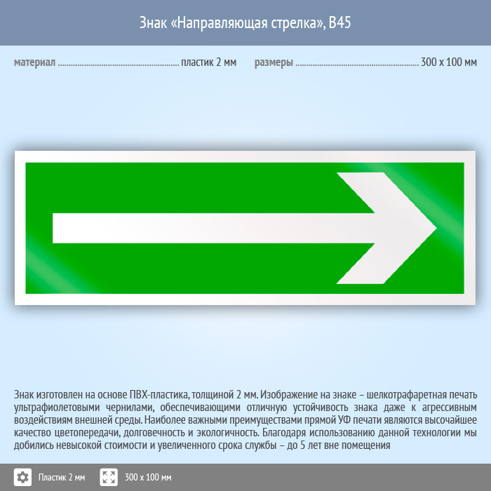 Знак «Направляющая стрелка», B45 (пластик, 300х100 мм) в Новочебоксарске купить