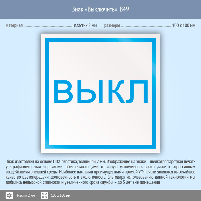 Знак «Выключить», B49 (пластик, 100х100 мм) в Новочебоксарске купить