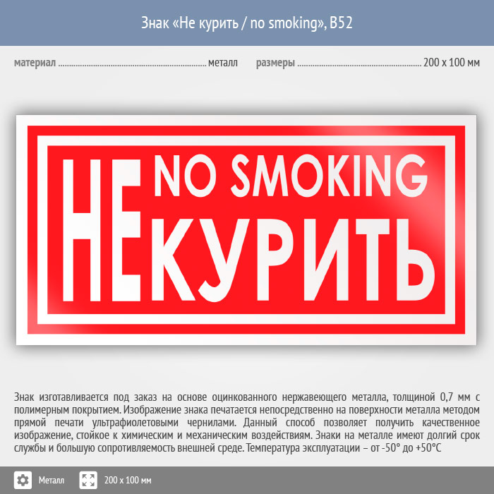 Знак «Не курить / no smoking», B52 (металл, 200х100 мм) в Новочебоксарске купить