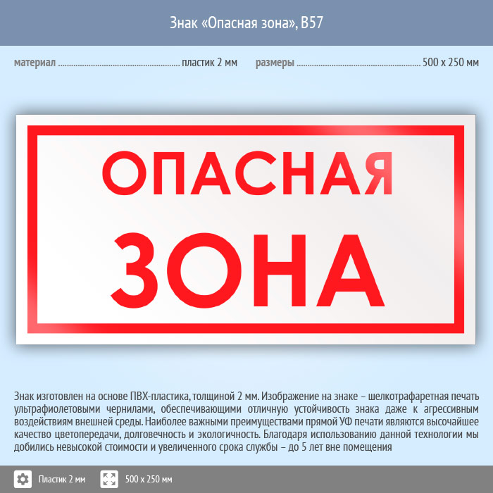 Знак «Опасная зона», B57 (пластик, 500х250 мм) в Новочебоксарске купить