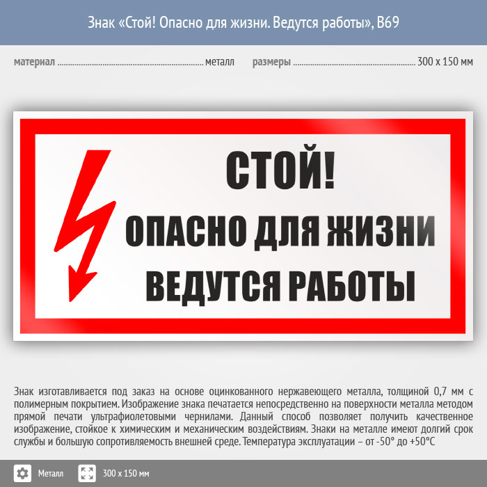 Знак «Стой! Опасно для жизни. Ведутся работы», B69 (металл, 300х150 мм) в Новочебоксарске купить
