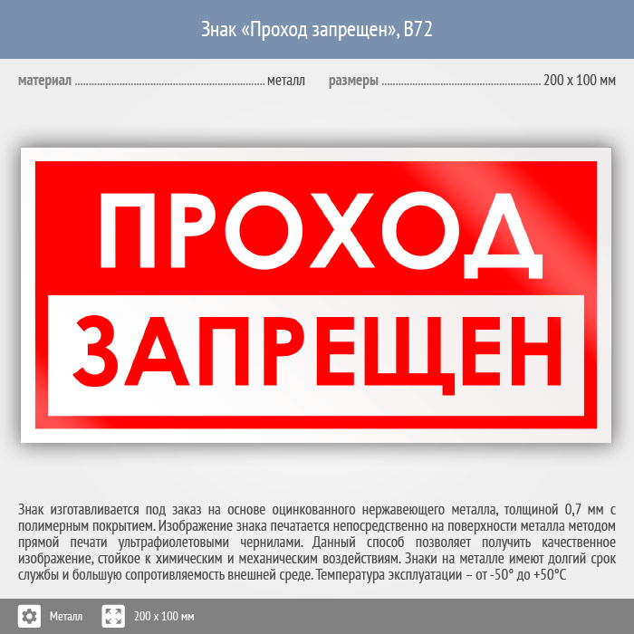 Знак «Проход запрещен», B72 (металл, 200х100 мм) в Новочебоксарске купить