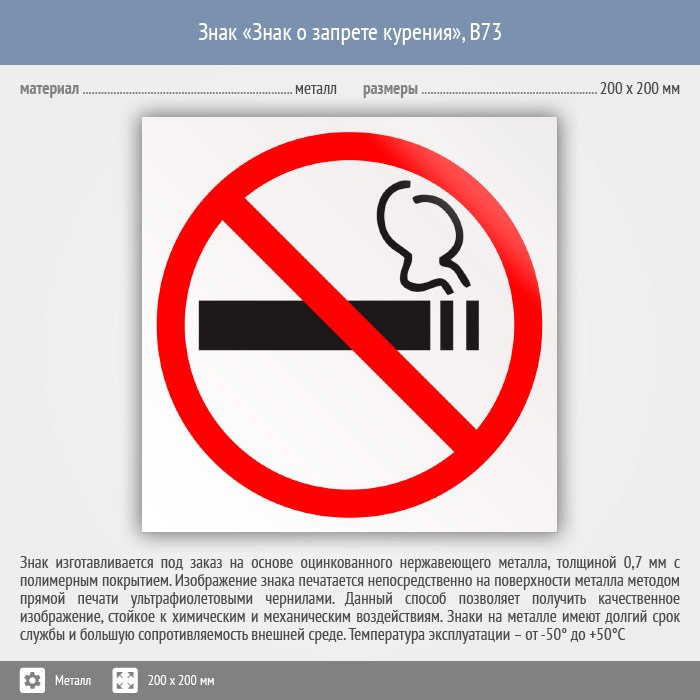 Знак «Знак о запрете курения», B73 (металл, 200х200 мм) в Новочебоксарске купить