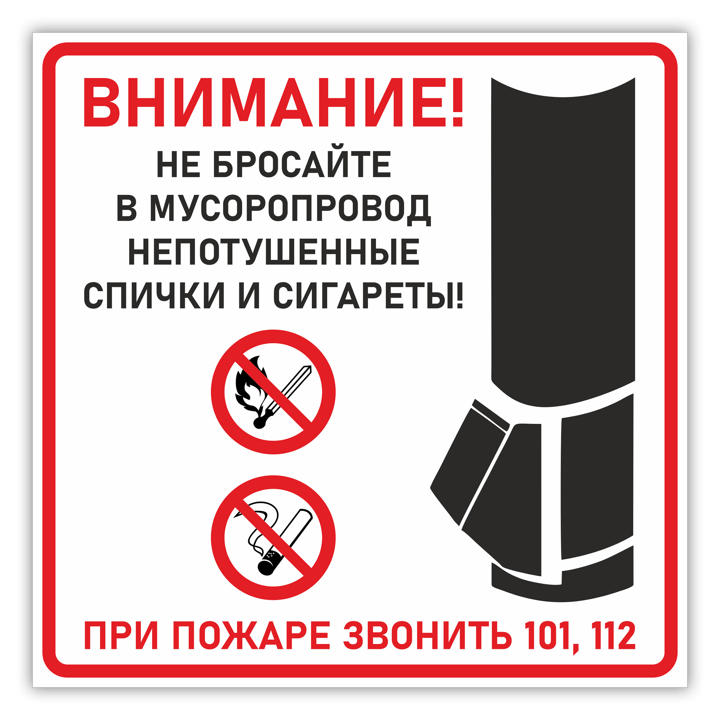 Знак B120 «Для мусоропровода» — это необходимый элемент противопожарной защиты жилых многоквартирных домов. Яркая и понятная наклейка напоминает жильцам о строгом запрете на выбрасывание горящих предметов, что помогает предотвратить задымление и пожары в мусоросборных камерах