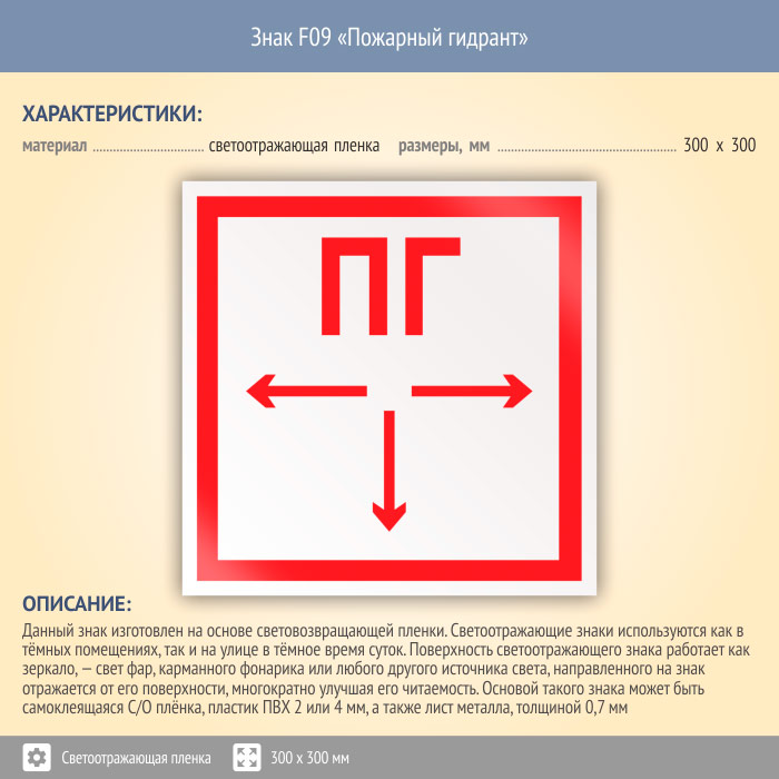 Знак F09 «Пожарный гидрант» (светоотражающая пленка, 300х300 мм) в Новочебоксарске купить