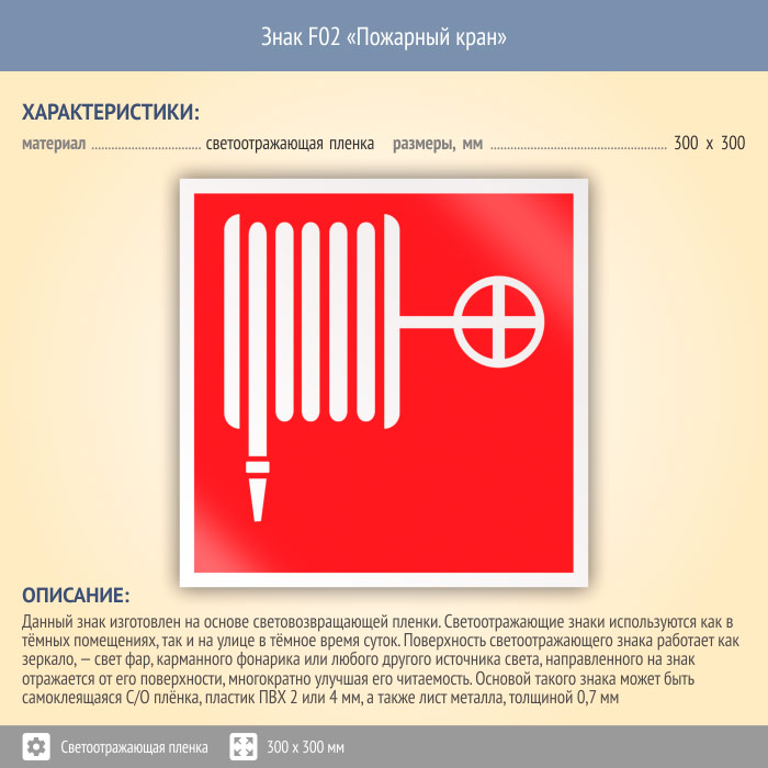 Знак F02 «Пожарный кран» (светоотражающая пленка, 300х300 мм) в Новочебоксарске купить