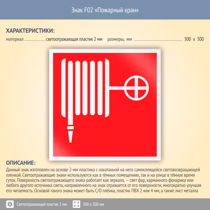 Знак F02 «Пожарный кран» (светоотражающий пластик, 300х300 мм) в Новочебоксарске купить