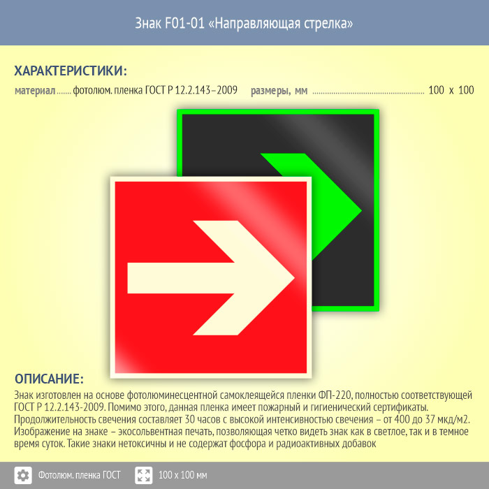 Знак F01-01 «Направляющая стрелка» (фотолюминесцентная пленка ГОСТ 34428-2018, 100х100 мм) в Новочебоксарске купить