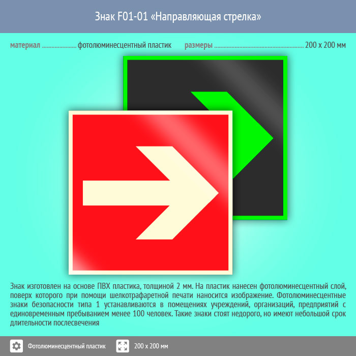 Знак F01-01 «Направляющая стрелка» (фотолюминесцентный пластик, 200х200 мм) в Новочебоксарске купить