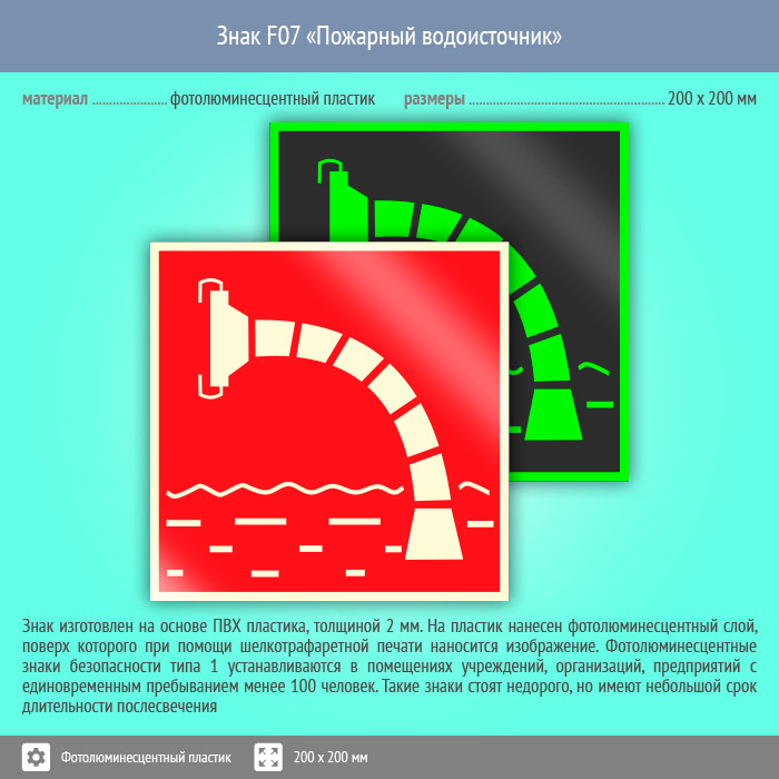 Знак F07 «Пожарный водоисточник» (фотолюминесцентный пластик, 200х200 мм) в Новочебоксарске купить