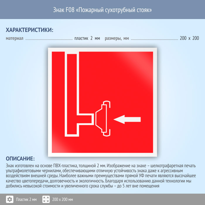 Знак F08 «Пожарный сухотрубный стояк» (пластик, 200х200 мм) в Новочебоксарске купить