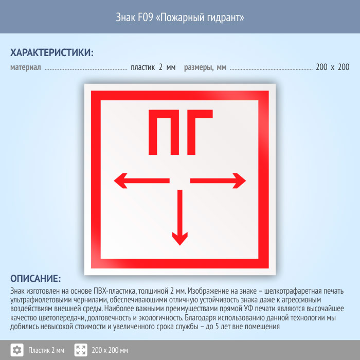 Знак F09 «Пожарный гидрант» (пластик, 200х200 мм) в Новочебоксарске купить