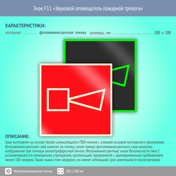 Знак F11 «Звуковой оповещатель пожарной тревоги» (фотолюминесцентная пленка, 200х200 мм) в Новочебоксарске купить