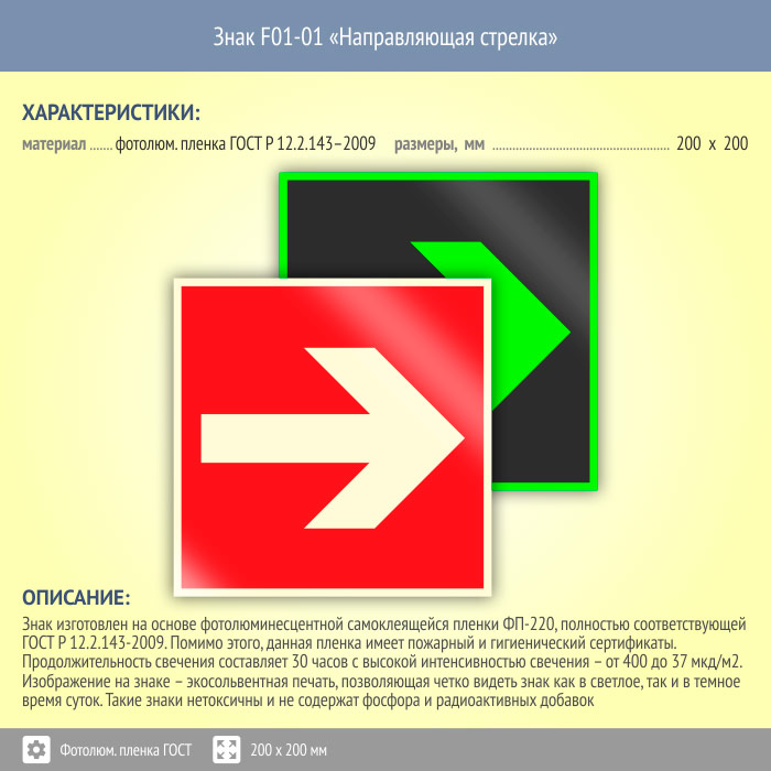 Знак F01-01 «Направляющая стрелка» (фотолюминесцентная пленка ГОСТ 34428-2018, 200х200 мм) в Новочебоксарске купить