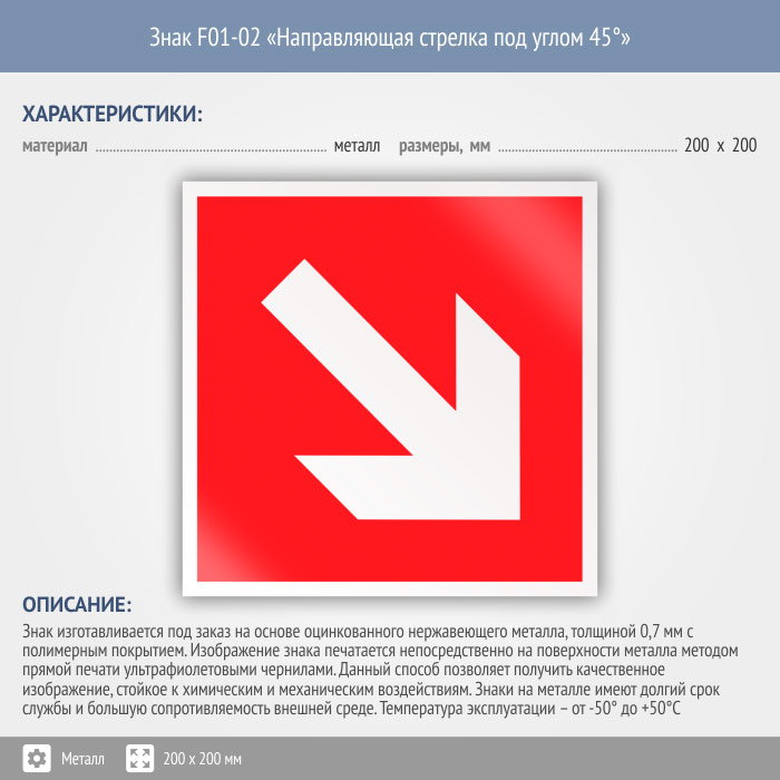 Знак F01-02 «Направляющая стрелка под углом 45°» (металл, 200х200 мм) в Новочебоксарске купить
