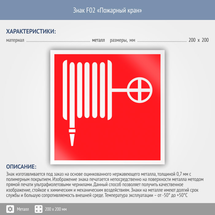 Знак F02 «Пожарный кран» (металл, 200х200 мм) в Новочебоксарске купить