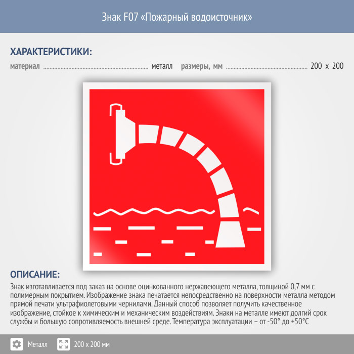 Знак F07 «Пожарный водоисточник» (металл, 200х200 мм) в Новочебоксарске купить