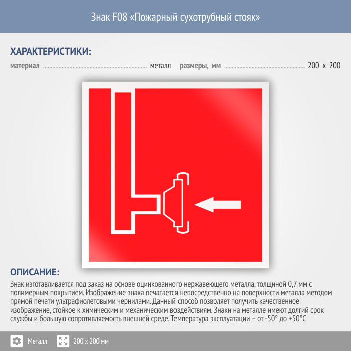 Знак F08 «Пожарный сухотрубный стояк» (металл, 200х200 мм) в Новочебоксарске купить